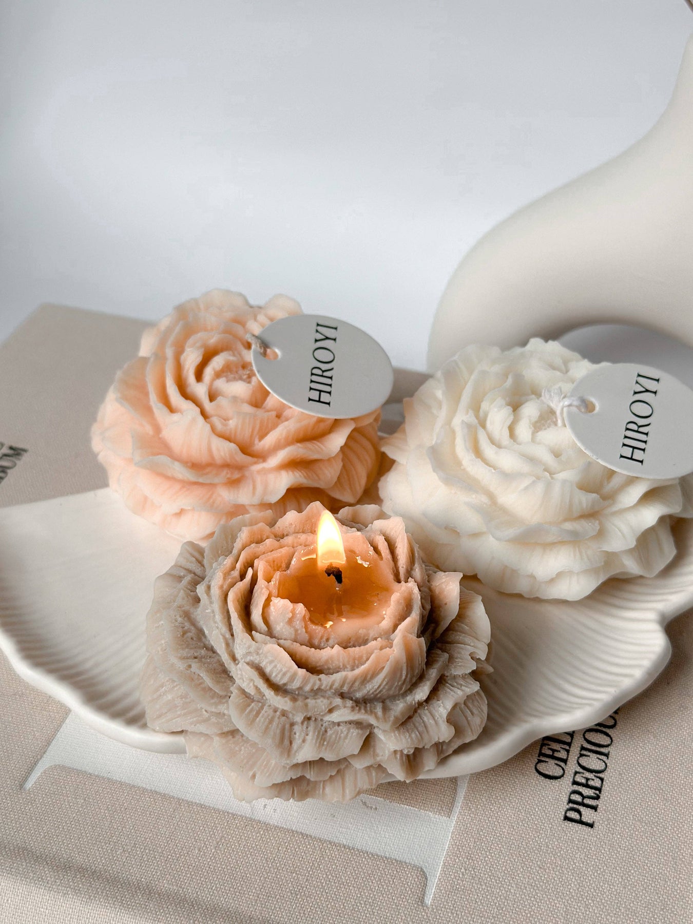 Vela de flor de peonía: Beige